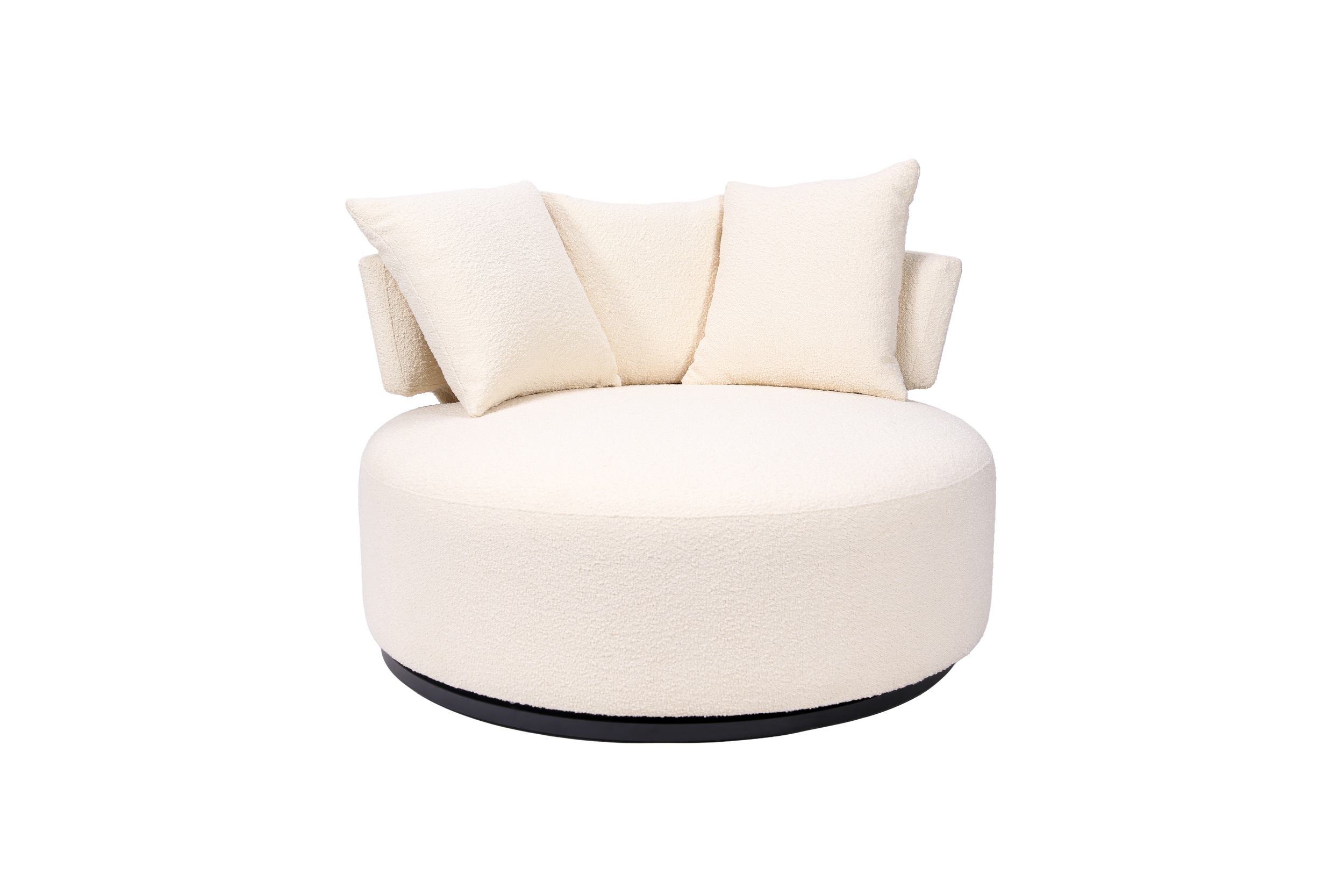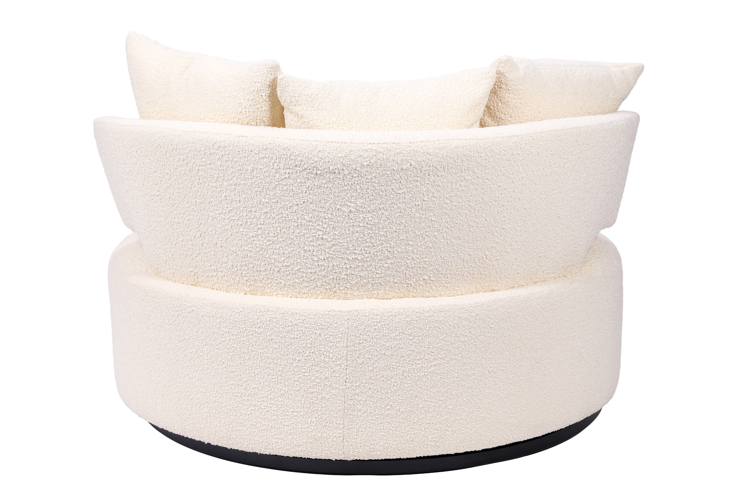 The Charlie Wide circle style white boucle accent chair QTY: 1H: 26.5in x W: 47in x L: 47in Request a Quote
