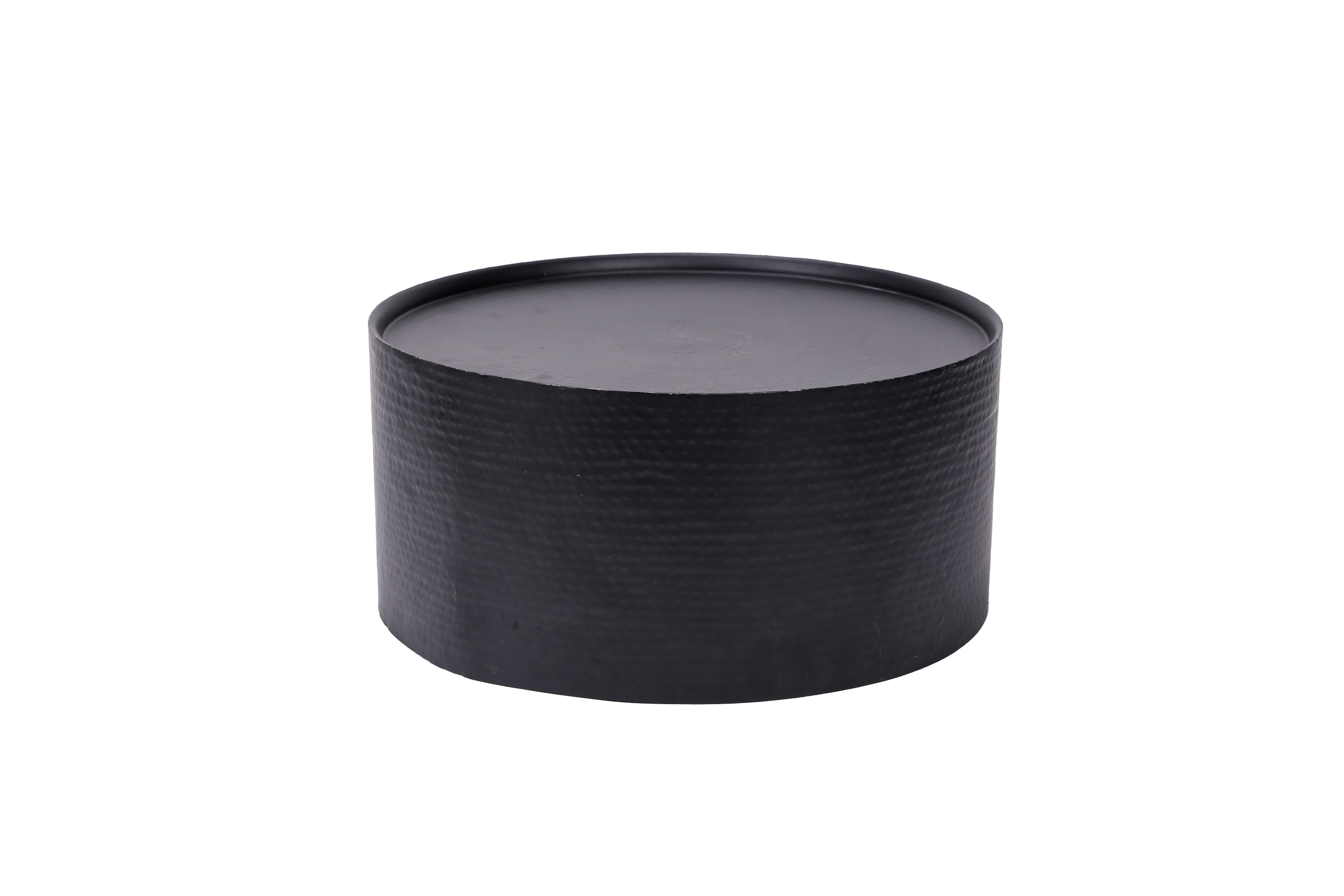 View fullsize The Black Drum Hammered Black metal round coffee tableQTY: 2 H: 12in x W: 26in x L: 26in Request a Quote