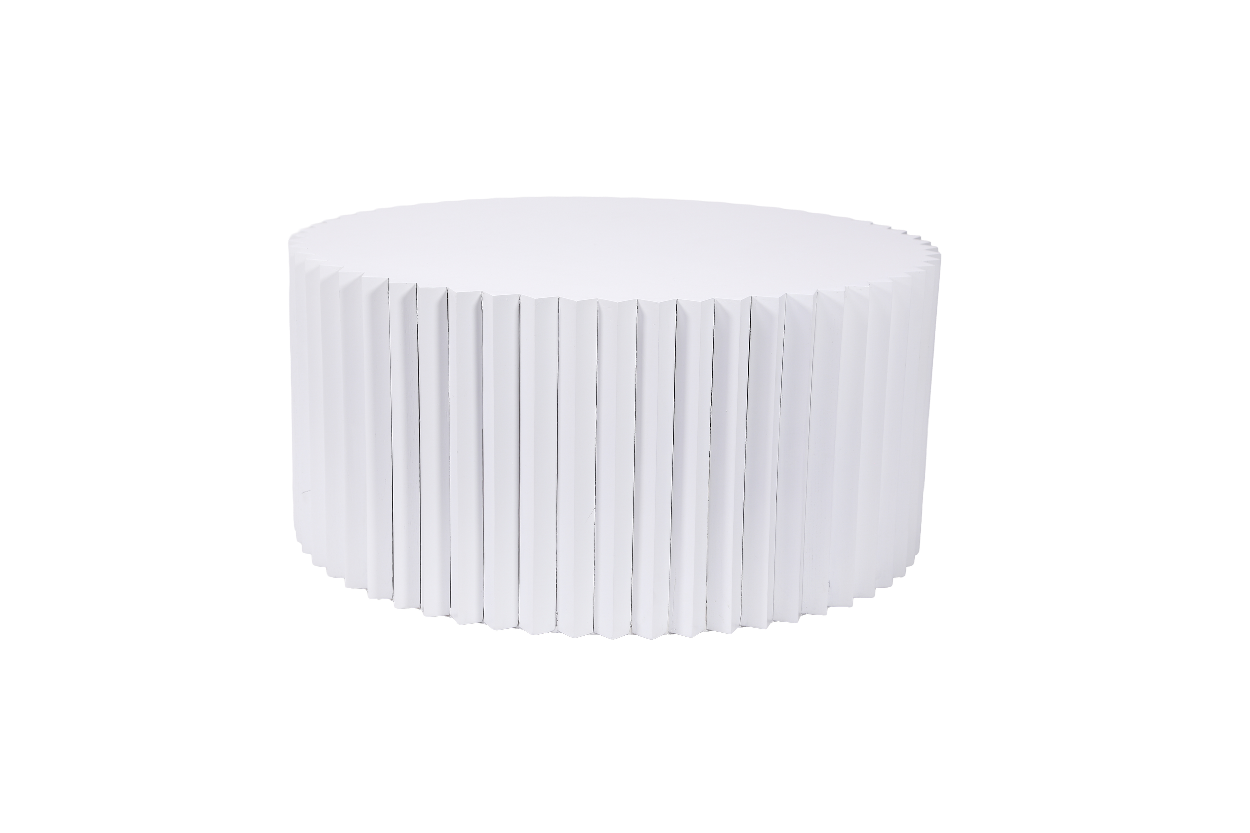 View fullsize The Kimmel - White White satin solid wood coffee table with ribbed sidesQTY: 2 H: 18in x W: 39.5in x L: 39.5in Request a Quote