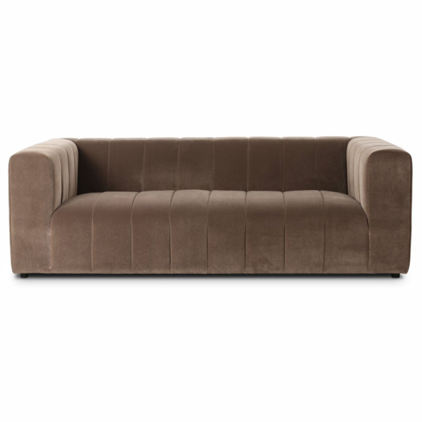 View fullsize The Love Park Mocha brown velvet tuffed love seat QTY: 4 H: 28.4in x W: 40in x L: 70in Request a Quote