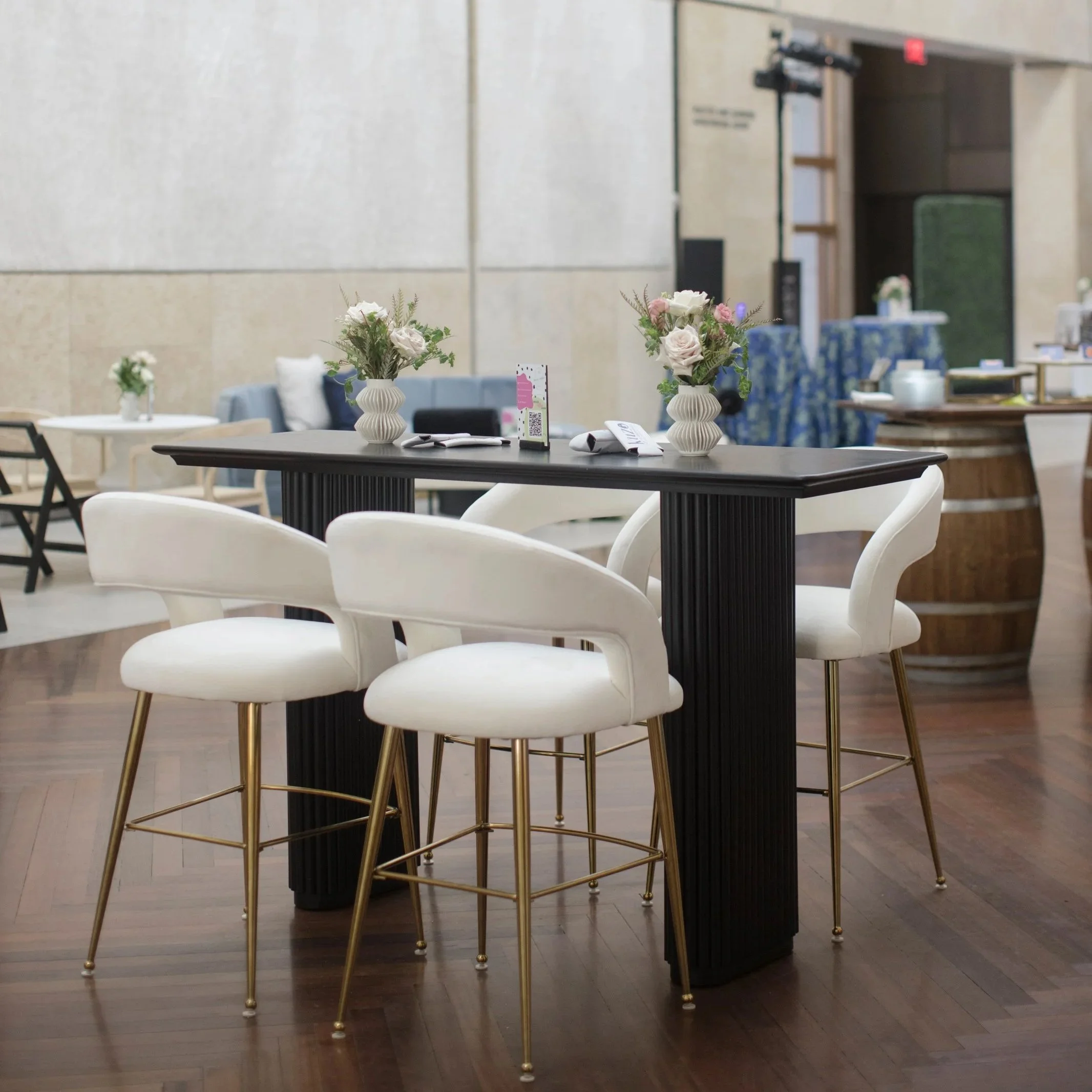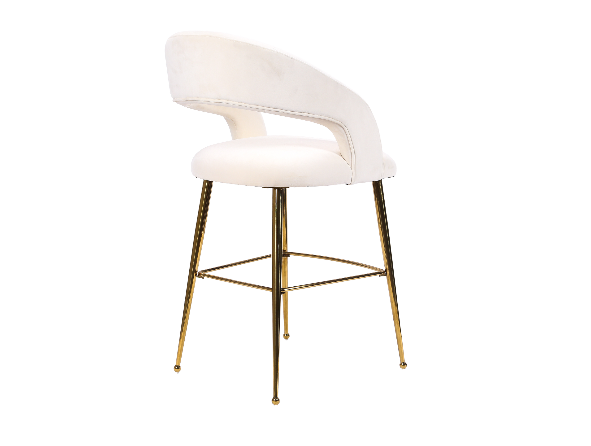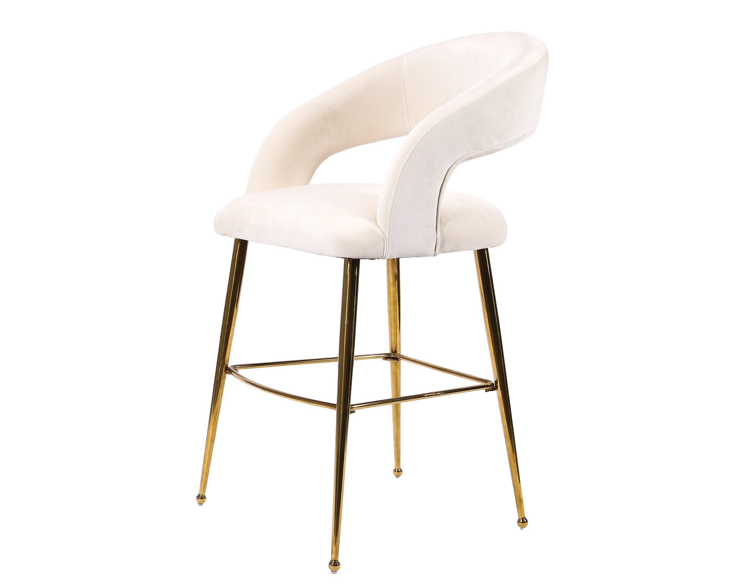 View fullsize View fullsize View fullsize View fullsize The Alexandra White velvet bar stool with gold legsQTY: 25 H: 40in x W: 22in x L: 24in Request a Quote